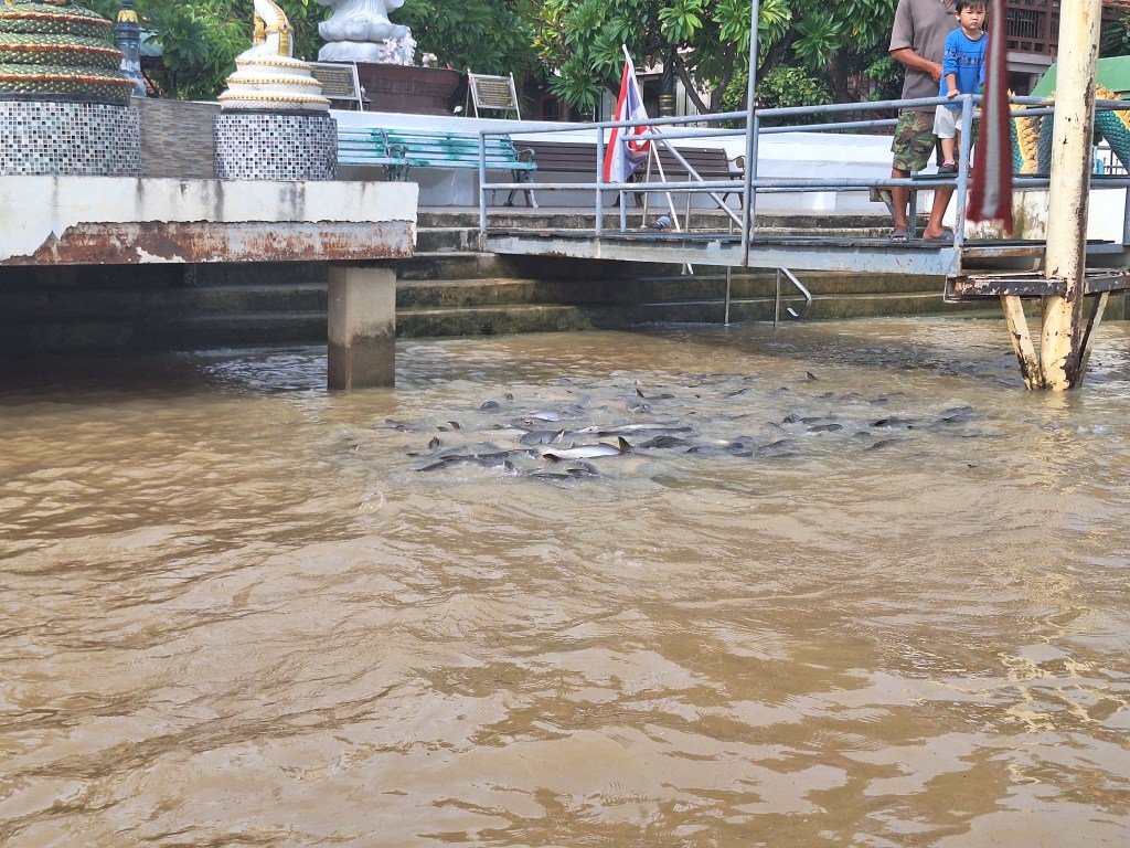 There were these massive fish in the river and we threw bread rolls to them to eat.