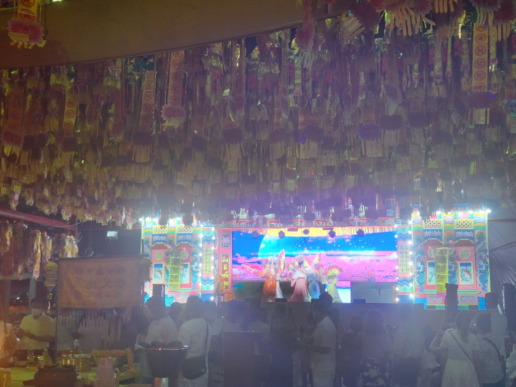 We meet our tour, we are the youngest on this one. We went for dinner near the river and on the way we saw a Chinese opera show and the vegetarian festival, they even had a big Chinese dragon.