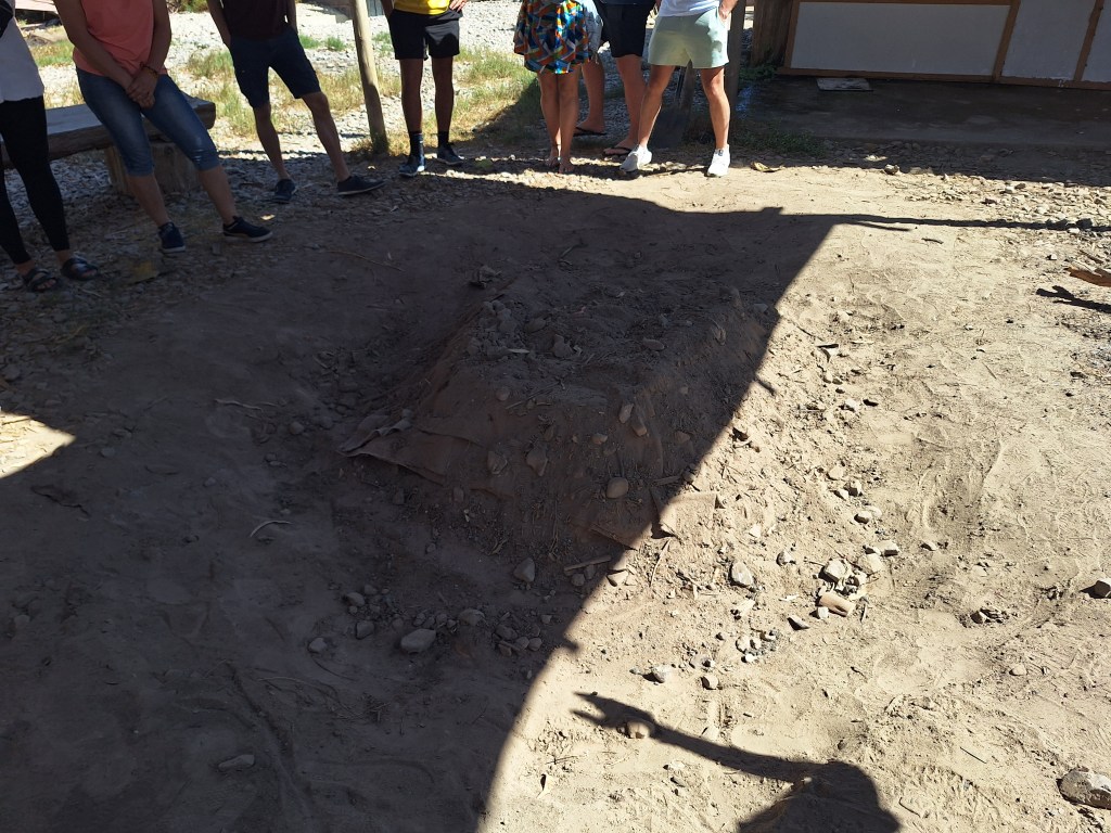 Everyone is included in getting this meal ready from digging the hole, killing and preparing the meat, heating the rocks, etc. Tends to feed 30 + people.