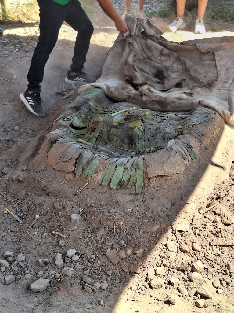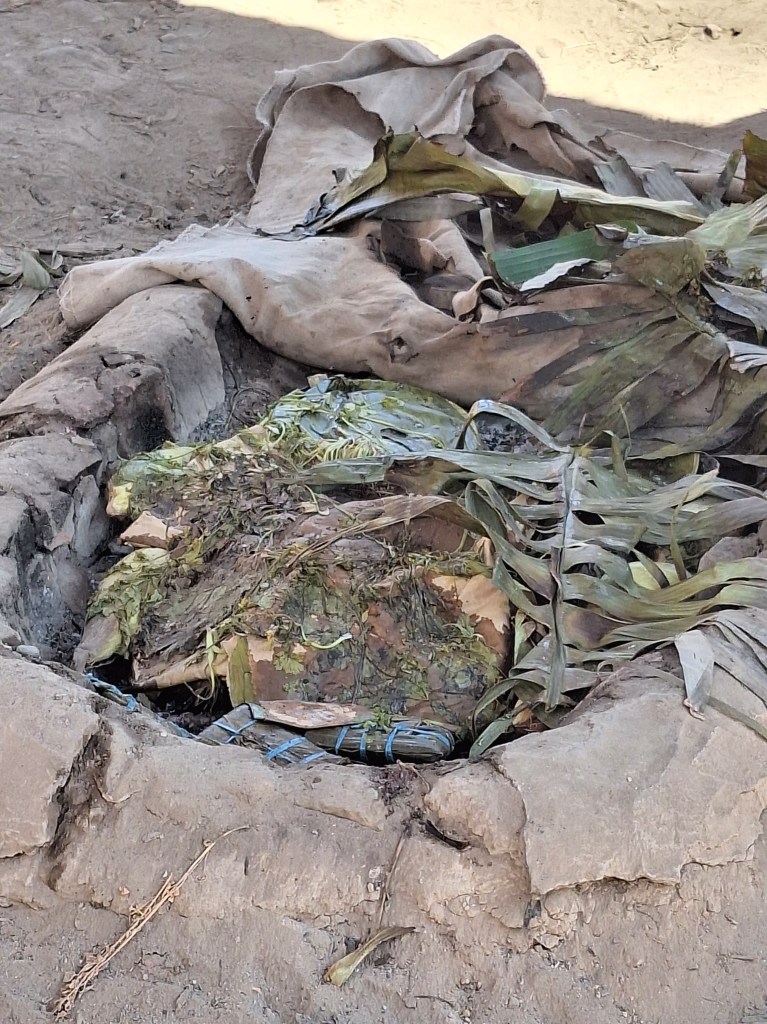 This meal is all cooked under ground. Normally after the rainy season which is Dec- Feb. It tends to be for a special occasion and a big group of people. Tends to be more in the Anders where they will cook anything but normally is beef, chicken and pork.