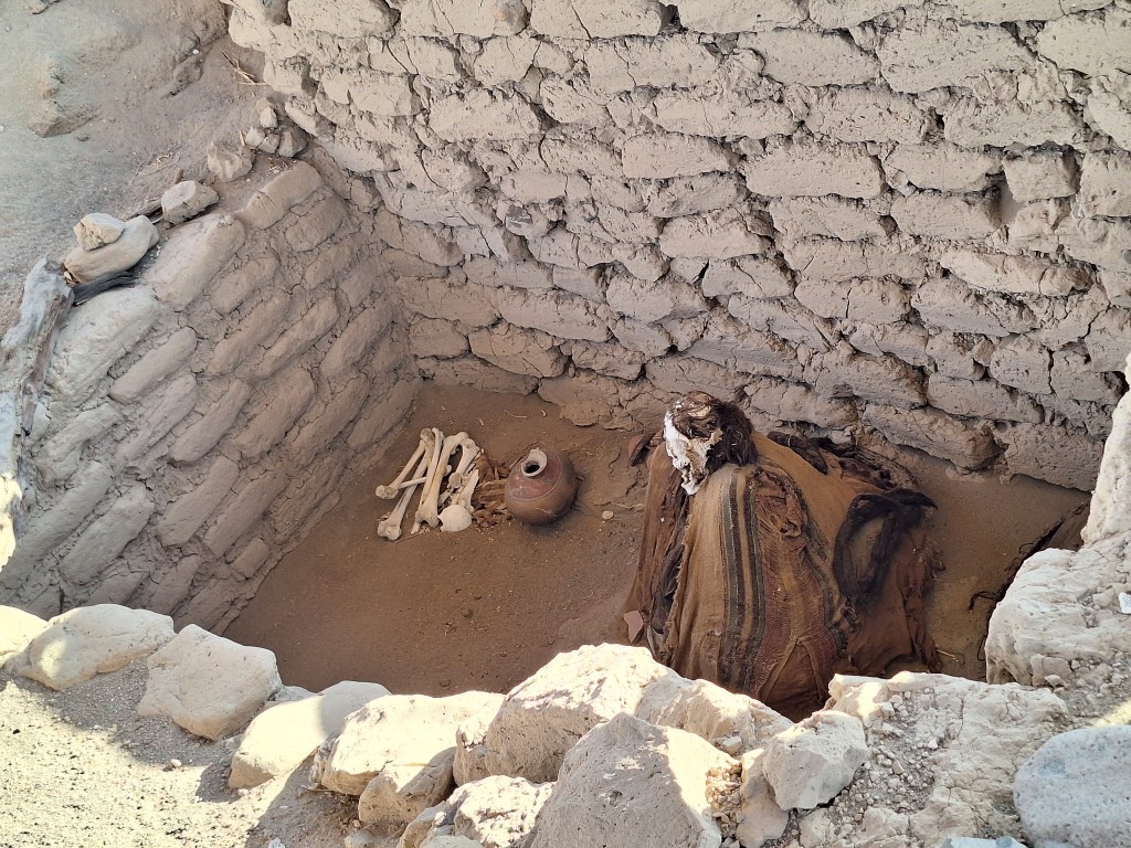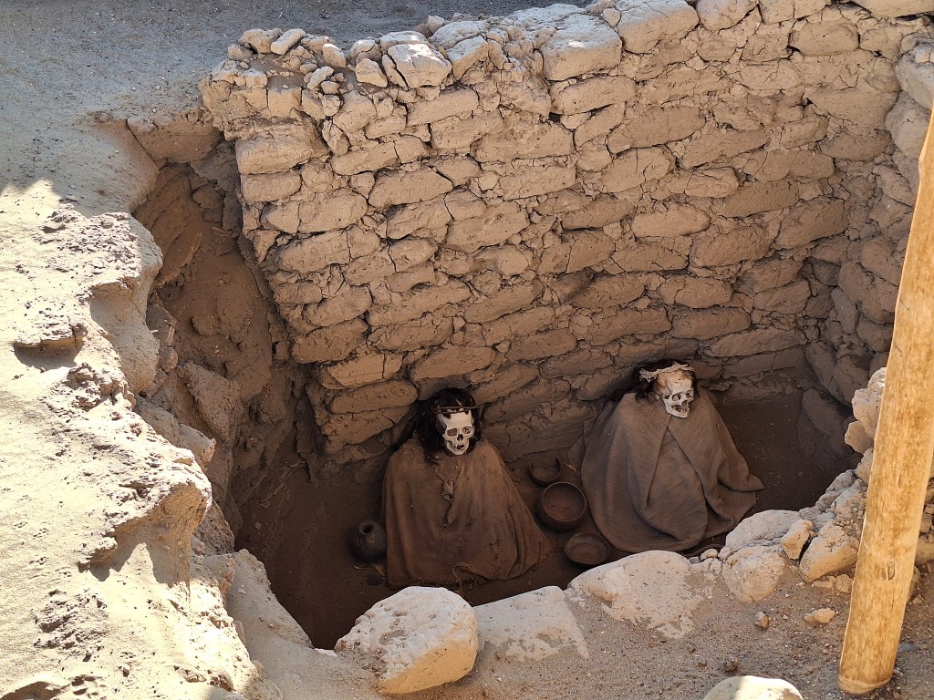 Lastly in Nazca we went to Chauchilla Cemetery, where they have prehispanic mummified human remains. They were so intact due to the weather here and their hair doesn’t stop growing!!