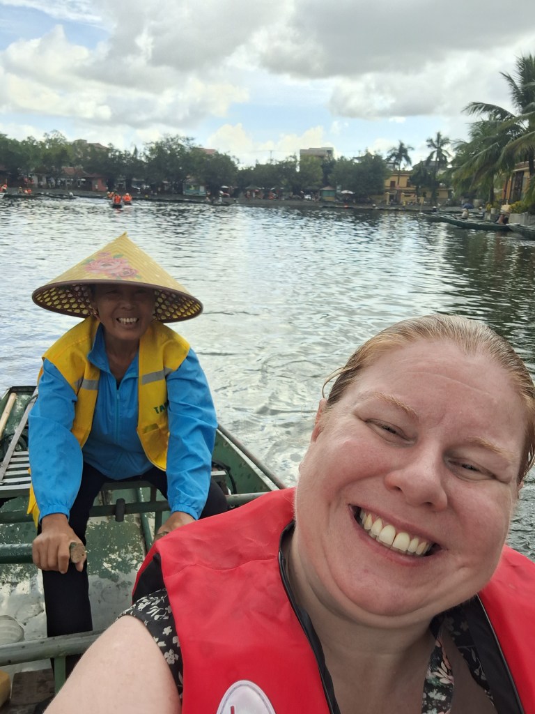 We went on the smaller boat to take bamboo boats around Bright Cave. Was lovely views, we saw monkeys in the trees and of course supporting the local people.