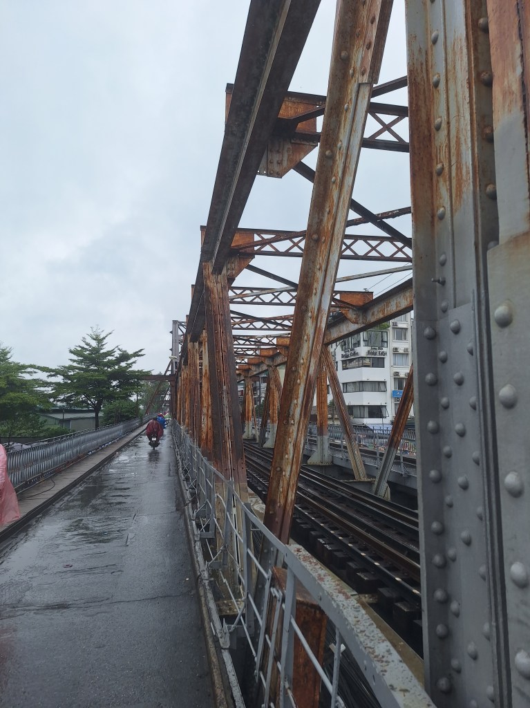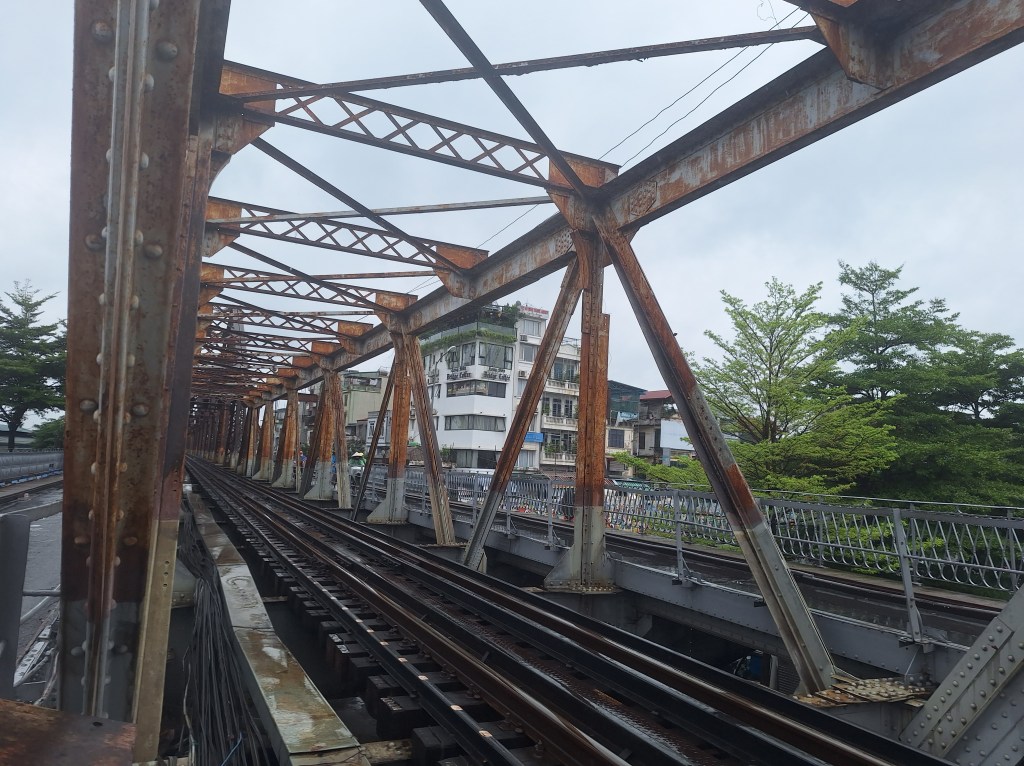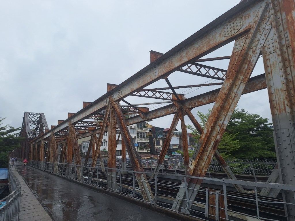 The first stop was the French railway bridge that was made in 1899 and has had parts rebuild due to past bombings. Only bikes and people are allowed on this bridge. Historically, the French used these tracks and rode to move goods in and out of Hanio. They changed the direction of the traffic to drive on the left due to balance issues, this has remained to this day.