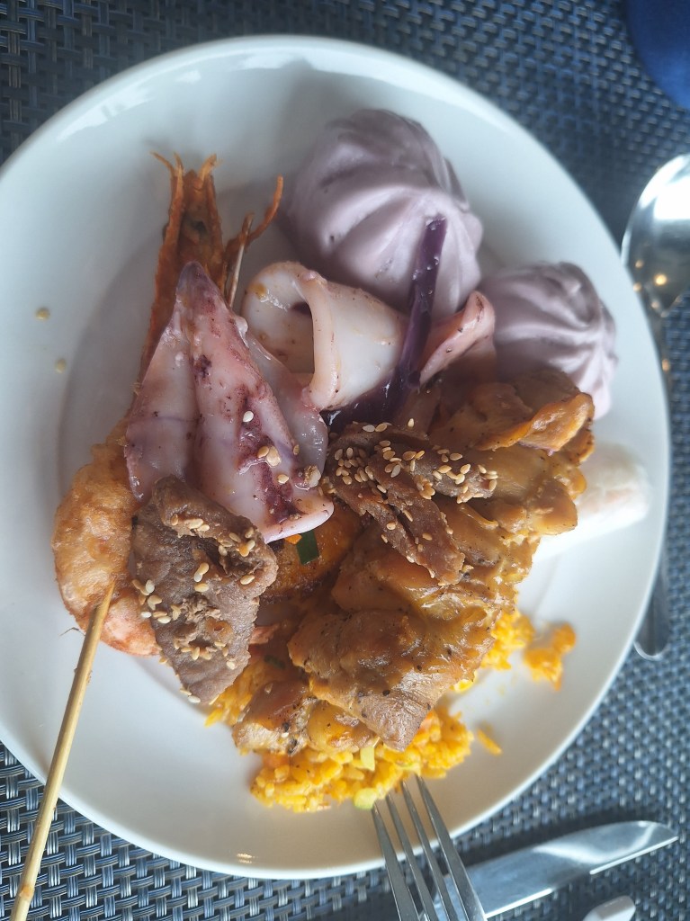 I hadn’t realised it was a restaurant in a hotel and up on the 8th floor. No matter, I ordered the deep-fried pillows, which came with pork and mushrooms in pastry. Was a large portion and super yummy!