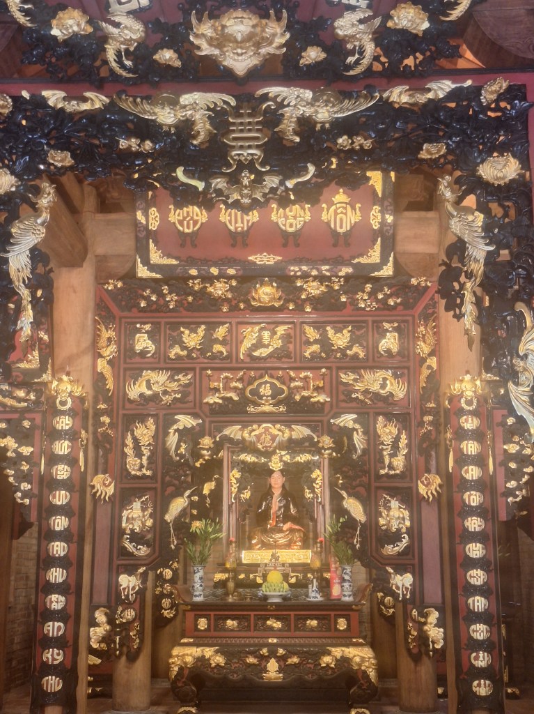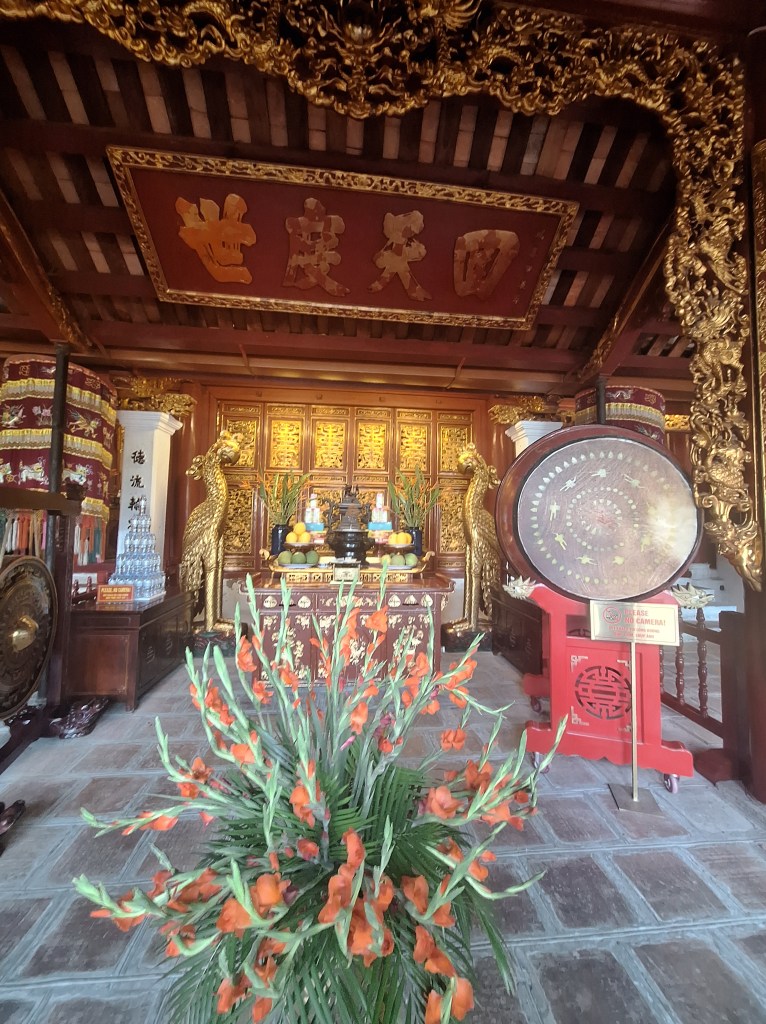 The last stop on the tour was the first king of Vietnams temple. This used to be the capital but was moved by boat in 1946 to Hanoi. When you go into the temple, you have a high step to pass over. The reason for this is you would automatically bend down when you bring your second leg through, and therefore, you are bowing to the king regardless if you meant to.