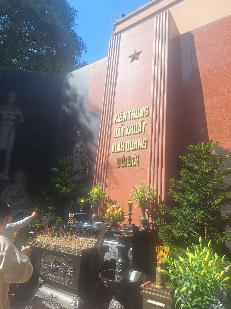 We stopped at Ho Chi Minhs mausoleum (didn’t go inside). His body is on display in a glass cabinet like a mummy. This was against his wishes, which was to be cremated, and his ashes spread between northern, central, and southern Vietnam. The government had other plans for his body, which all people in Vietnam have to visit at least once!
