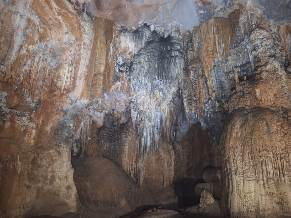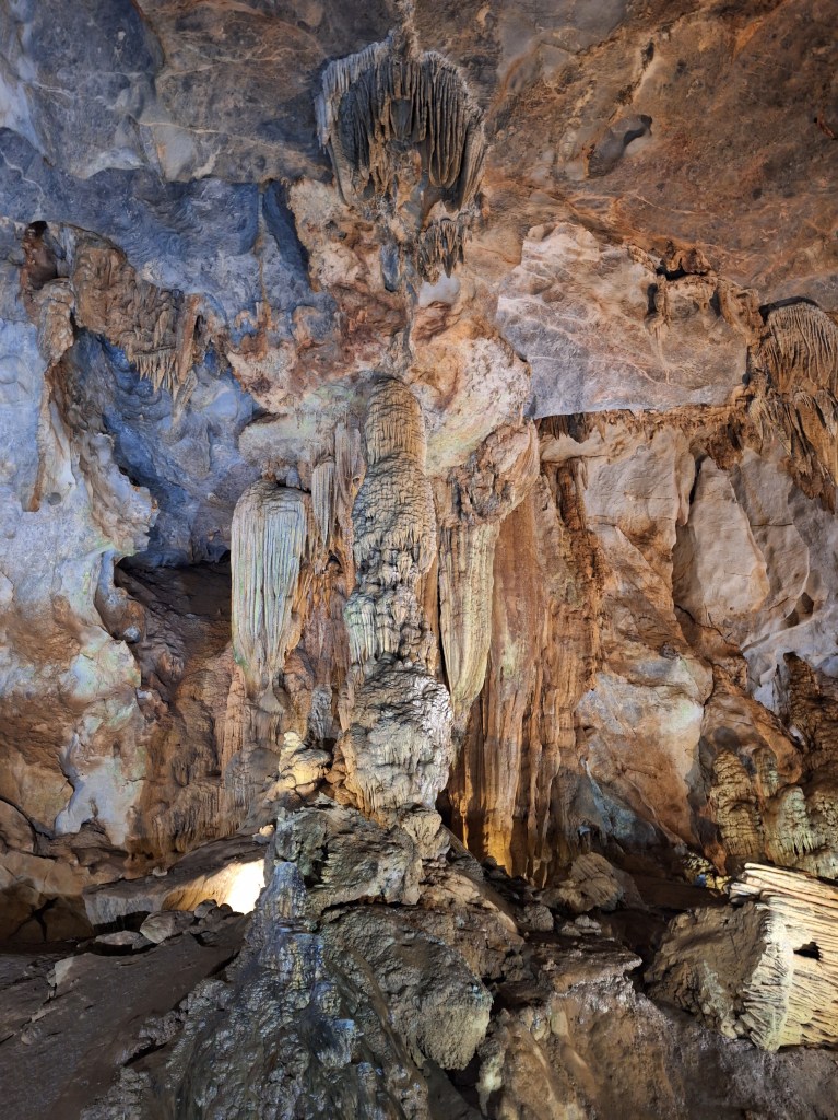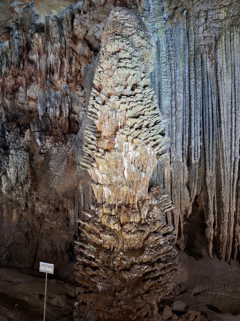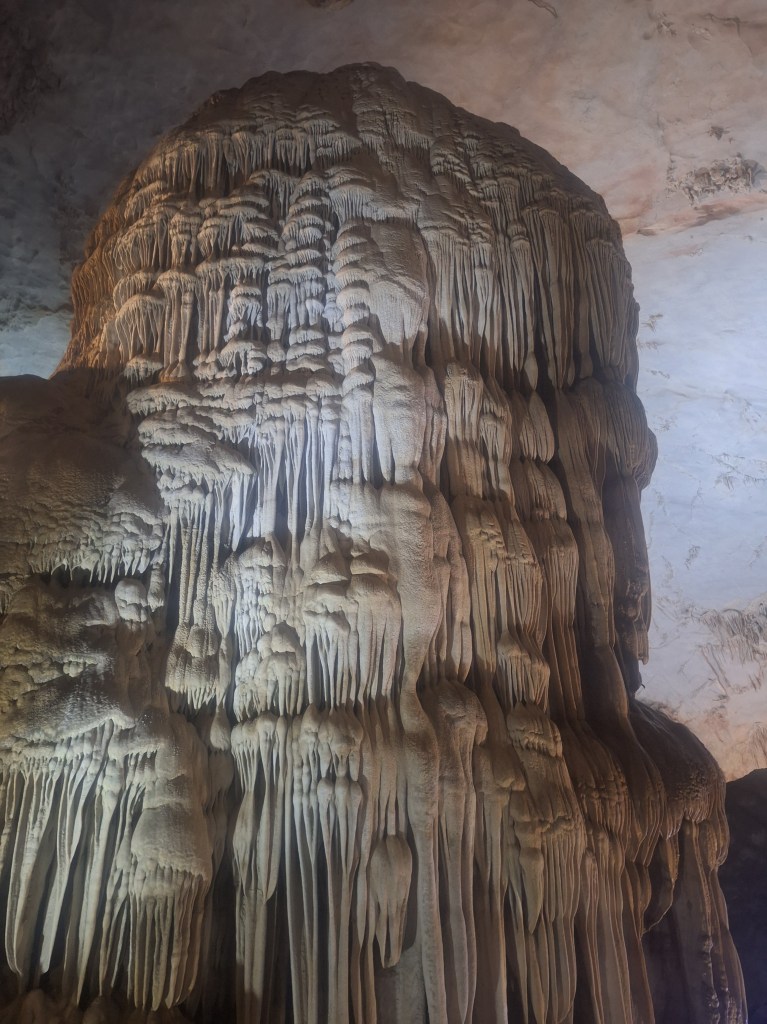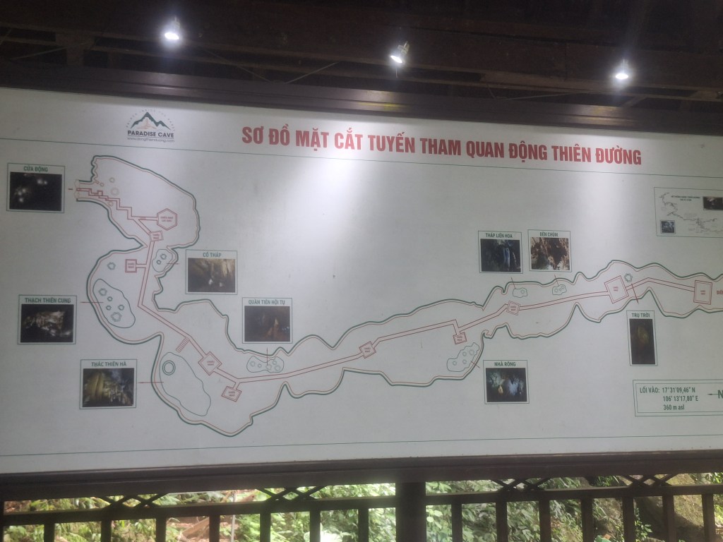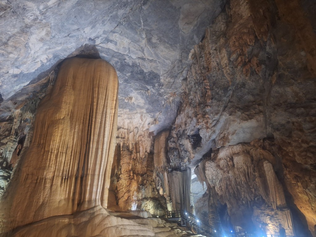 Paradise Cave is in the Phong Nha-Kẻ Bàng National Park. It was discovered by explorers from the British Cave Research Association in 2005 that found the cave and took 5 years to build the road and wooden platform. Its a limestone cave and 31km in length. They estimate it took 35-40 million years for the cave to form and a 1m of stalactites and stalagmites takes 1 million years to form.